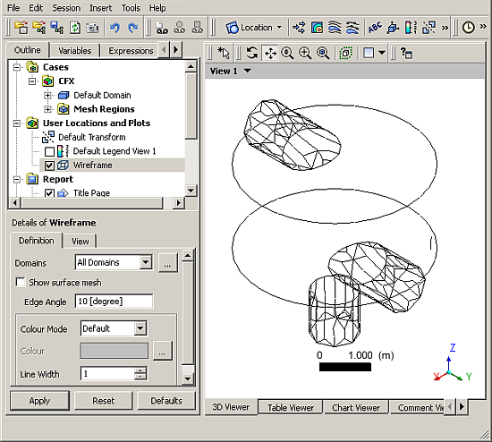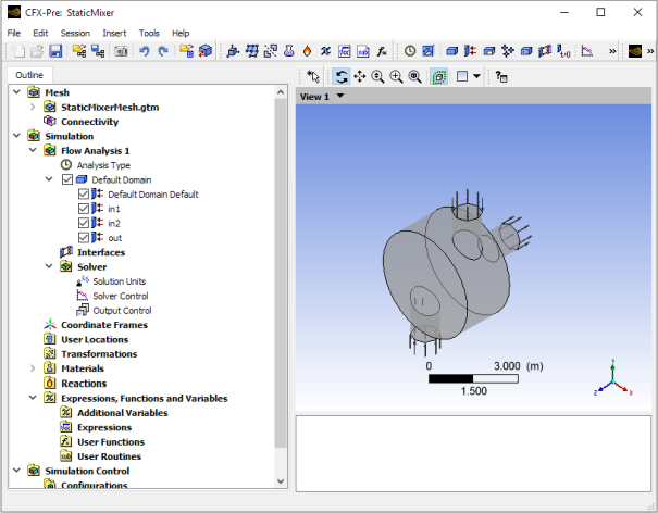 Because you are starting with an existing mesh, you can immediately use CFX-Pre to define the simulation. This is how CFX-Pre will look with the imported mesh: