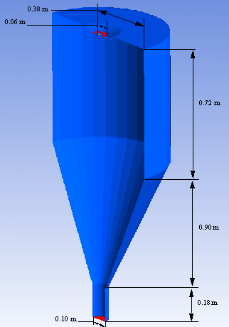 Periodic boundaries are used to enable only a small section of the full geometry to be modeled. The geometry to be modeled consists of a 9 degree section of the axisymmetric dryer shape. The relevant parameters of this problem are: