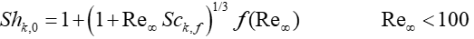 Where f(Re)=1 at Re⩽1 and f(Re)=Re0.077 at Re<100.