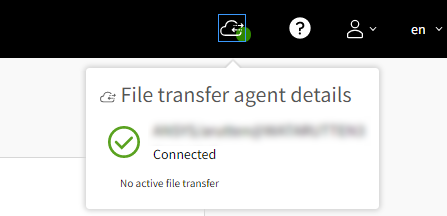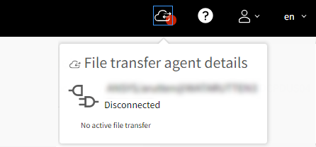 Use the status indicator on the DCG portal toolbar to quickly check whether the local file transfer agent is connected to a remote server.