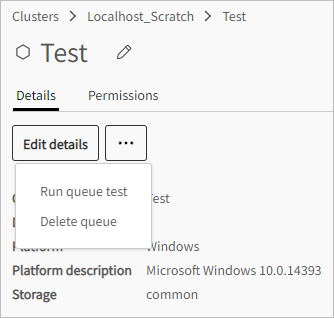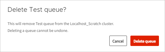 Open the cluster configuration containing the queue to delete. Click the cluster name, or in the Actions cell of the cluster, click and select .
