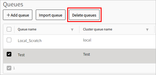Select the check box of the queue(s) to delete and click .