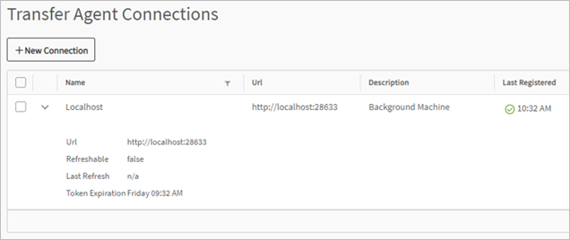 In the Transfer Agent Connections table, click the arrow to the left of the connection name: