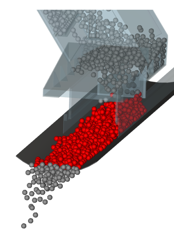 The scenario considered is analyzing the performance of a transfer chute with one feed and two receiving conveyors.