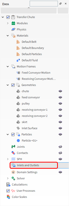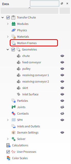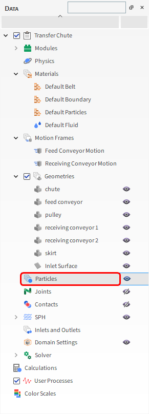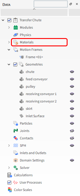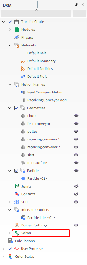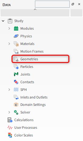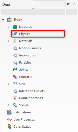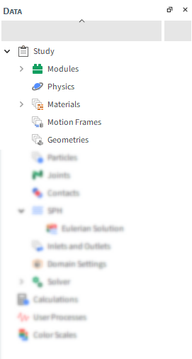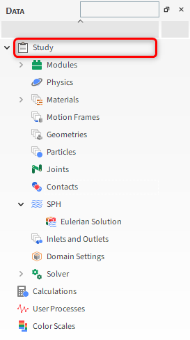 To set up any Rocky simulation, from the Data panel under Study, follow the items listed top-down and one-by-one: