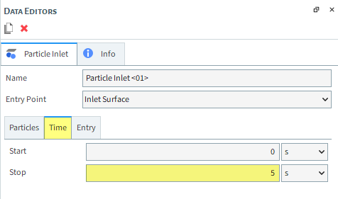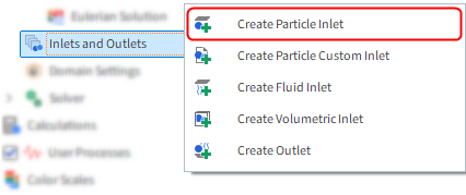 Inlets and Outlets: Define particle and fluid inlets and/or outlets and release locations.