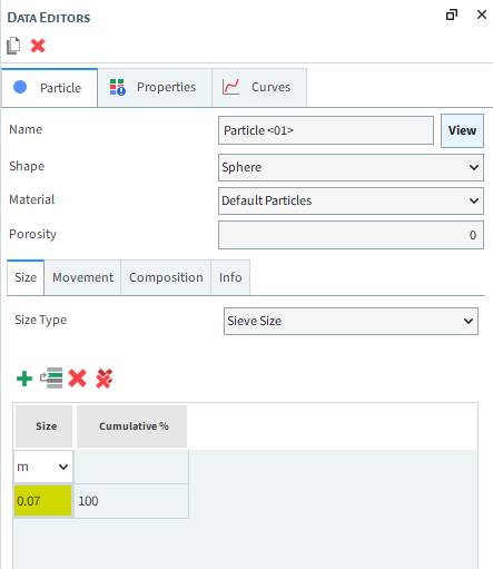 2. From the Data panel, select Particles and then from the Data Editors panel, select the Curves tab.