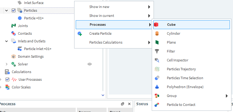 1. From the Data panel, right-click Particles, point to Processes, and then select Cube.