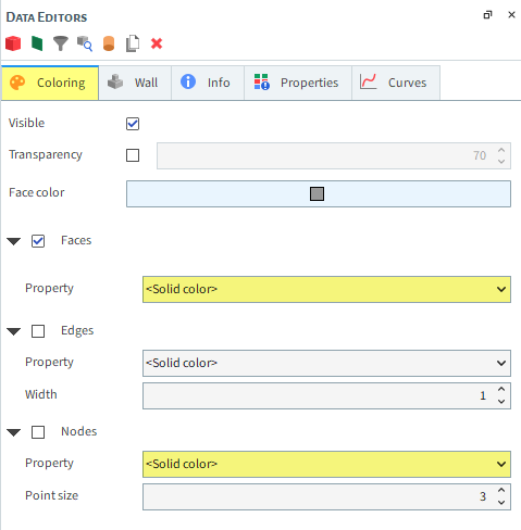 Grids: Allows you to change faces and edges colors for the geometries, as well as the display method.