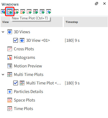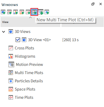 1. Similar to the Multi Time Plot, create a Time Plot by selecting New Time Plot from the Windows panel, or by using the shortcut Ctrl+T.