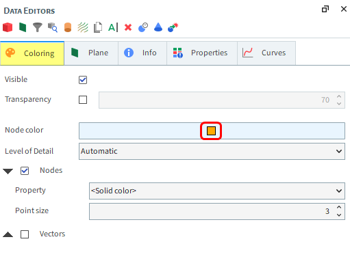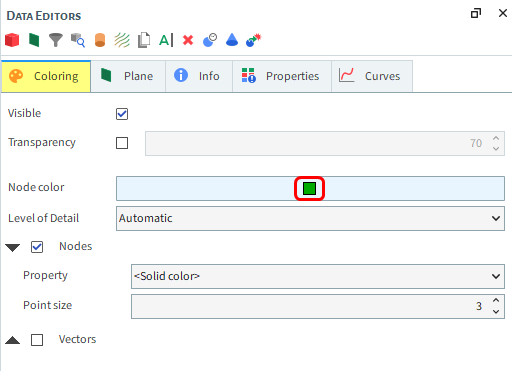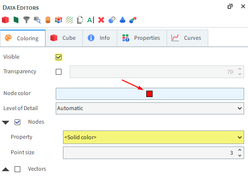 4. From the Coloring tab, select Solid Color as Nodes | Property, and ensure the Node color is set to red and the Visible checkbox is selected.