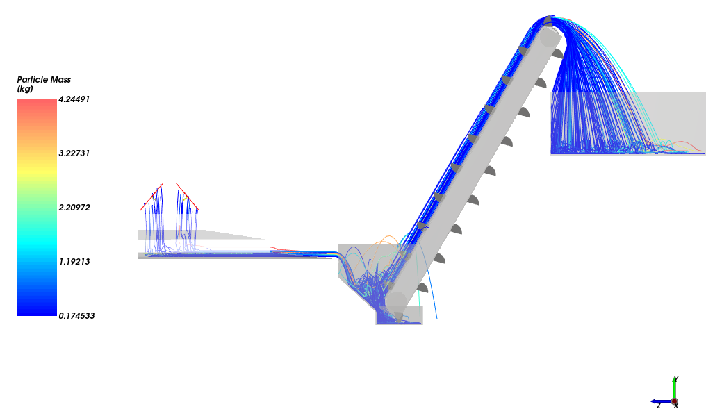 This completes Part B of this tutorial, in which Rocky was used to analyze the results from a Bucket Conveyor simulation.