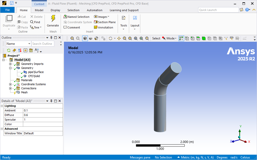 Ansys Fluent will open with a new project and the meshed geometry already imported.