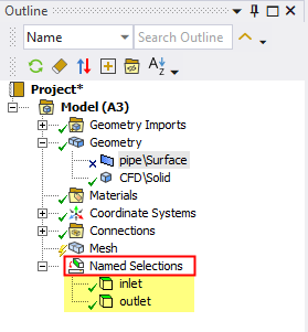 Define the inlet and outlet boundary conditions by creating two Named Selections as follows: