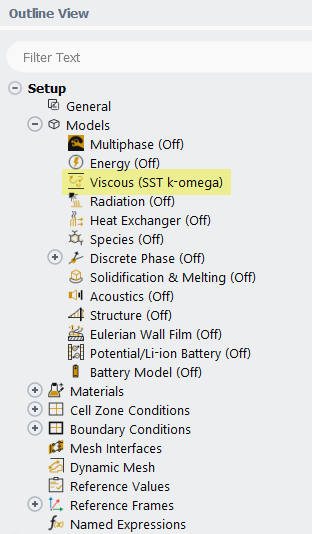 From the Outline View tree panel, under Setup | Models, double-click Viscous.