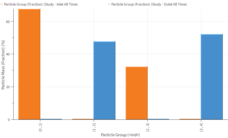 Another way to evaluate these results is to take a closer look at the two outlets to analyze what kind of particles are passing through each end of the pipe.