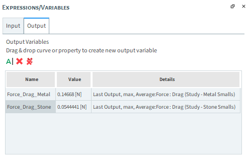 Edit (button) B Edit Properties (dialog box) Name Force_Drag_Metal Property to Curve average ⯆ C Expressions/Variables | Output ﹂Force_Drag_0