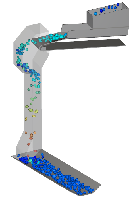 These parameters can be directly changed to compare different scenarios, in order to provide you with information on how to improve the chute design for the bulk material flow.