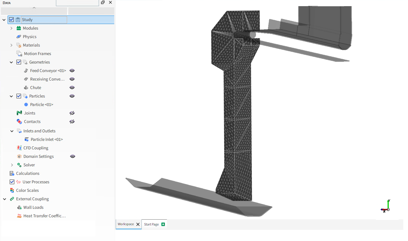 For this Tutorial, transient loads on only the chute geometry will be exported to Ansys Transient Structural - Mechanical.
