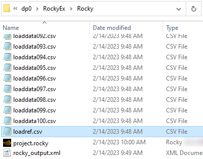 In the directory to which you have saved your Workbench files, navigate to the ../dp0/RockyEx/Rocky folder.