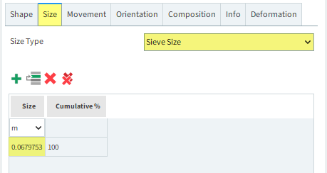From the Size tab, ensure Sieve Size is selected for Size Type and then enter the Size (as shown).