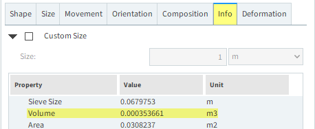 It is important that we ensure the volume produced by this sieve size matches the real-life volume of the bottle (353ml). We will do this by using the values on the Info tab.