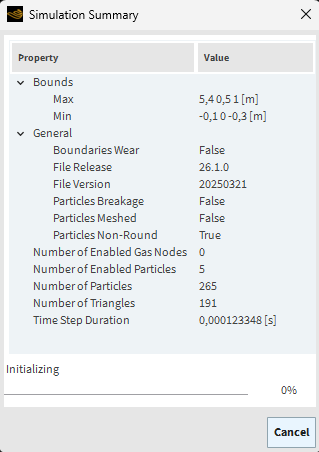 Under File Info, we can verify summarized info, such as the Number of Particles and the Min and Max values of the various Properties that were defined inside the .csv we loaded.