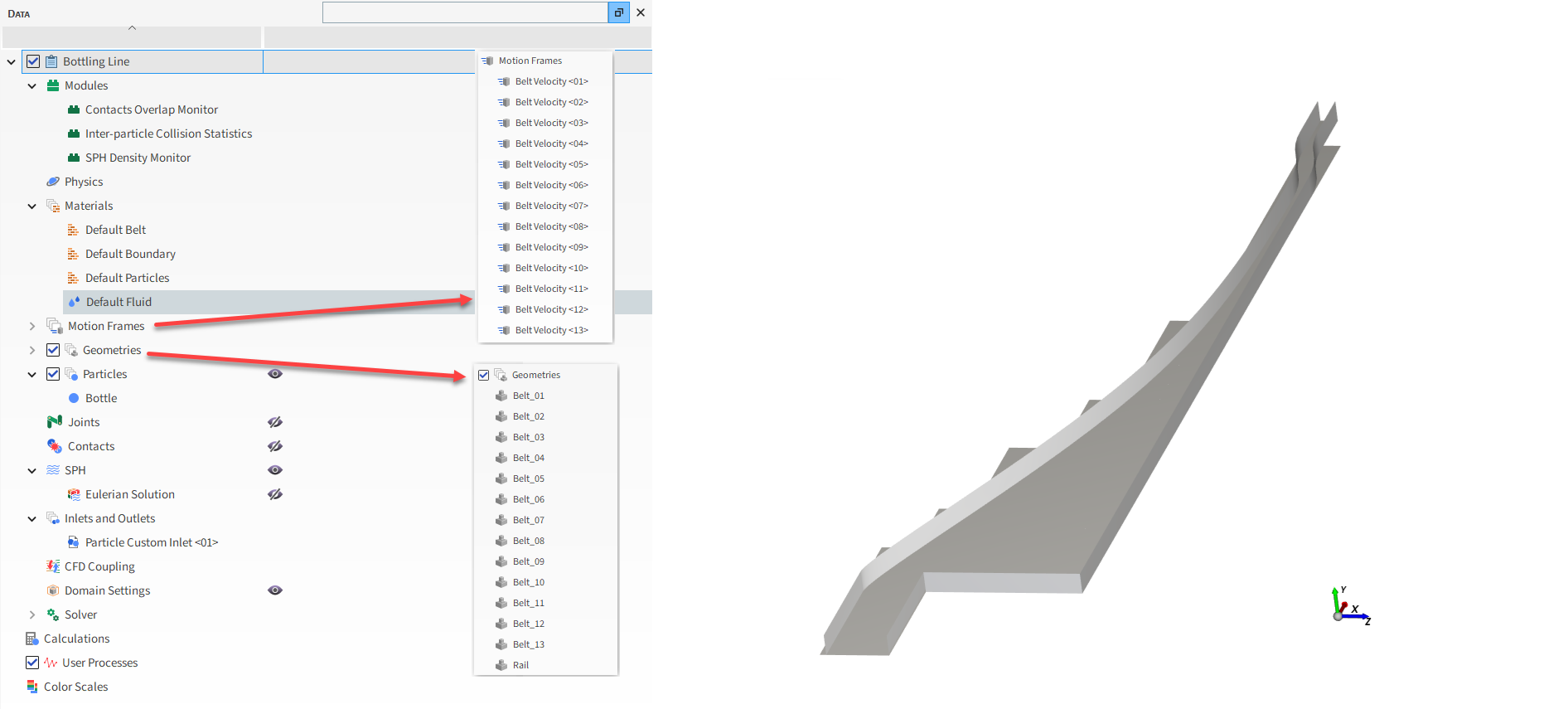 Step Data Entity Editors Location Parameter or Action Settings A Materials Interactions … | Default Particles ⯆ Default Belt ⯆
