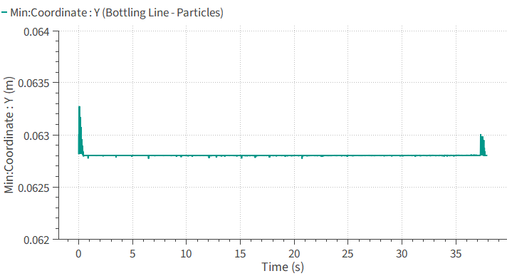 The resulting plot shows that the minimum particle Coordinate : Y is approximately the expected value for all outputs, which indicates that all the bottles remained upright.
