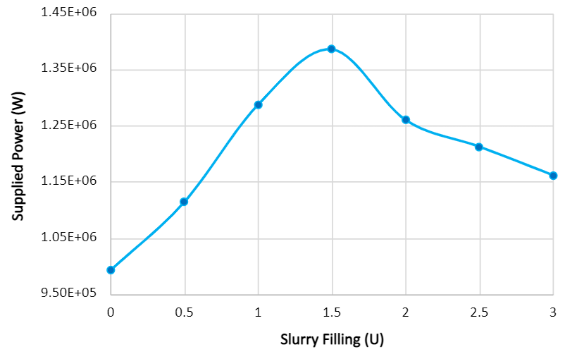 Our main interest in this tutorial is to evaluate the Supplied Power and analyze how it varies according to the Slurry Filling.