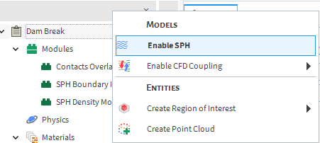 To activate SPH, from the Data panel, right-click on Enable SPH entity. Alternatively, Enable SPH can also be enabled from the main Study menu.