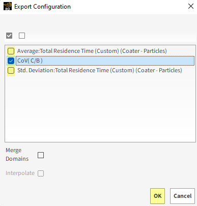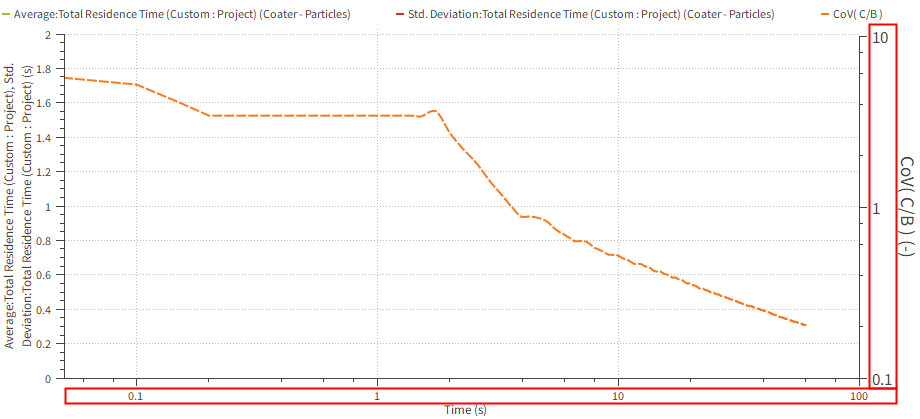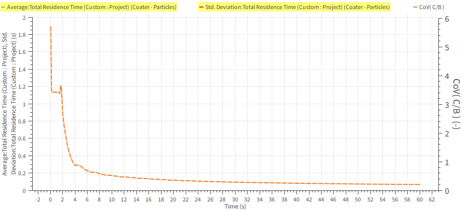(Part B): Use custom Polyhedron (Envelope) User Process shape to define the spray zone, and then make use of the Residence Time information from that area to calculate the Coefficient of Variability (CoV). Analyze the collision statistics and contacts data that was collected.