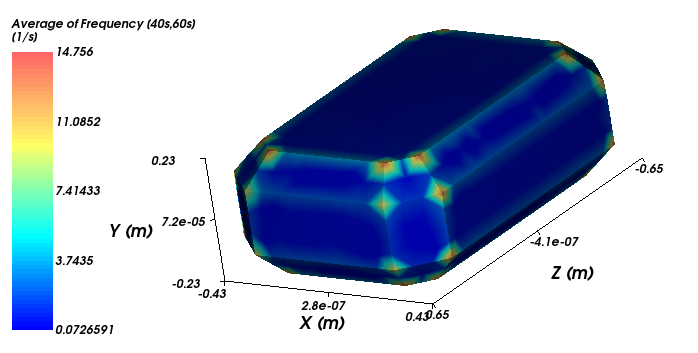 Collects the collision frequency values measured by different regions of the representative particle of the selected particle set. This can be useful for analyzing collision incidence on the particle surface.
