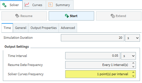 Here you will define how many times between Time Intervals the Solver will generate outputs for the selected property.