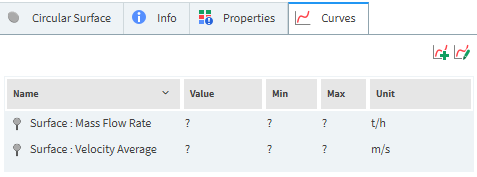 After the simulation has been processed, the resulting curves will be available at the Curves tab of the surfaces that you selected as entries in the SPH Surface Monitor Module.
