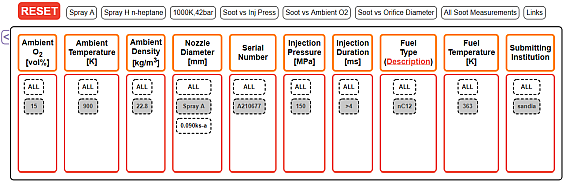 | Reference | Retrieved from Engine Combustion Network data search utility: https://ecn.sandia.gov/ecn-data-search/ Accessed on April 7, 2020. Find relevant data and information by choosing the parameters highlighted in gray below on the ECN data search utility. ![]() |