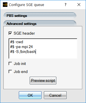 SGE settings are specified in the submittal script via