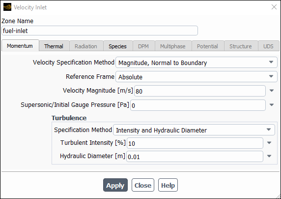 gascomb.mshcan be found in the folder.Use the Fluent Launcher to start Ansys Fluent.