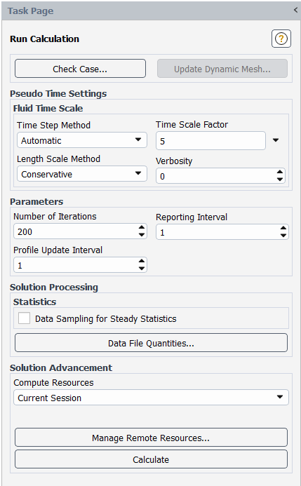 Select Solution in the top-left selection list to start Fluent in Solution Mode.