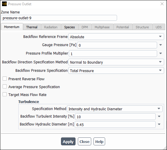 Ensure that pressure-outlet-9 is selected from the Surfaces selection list.
