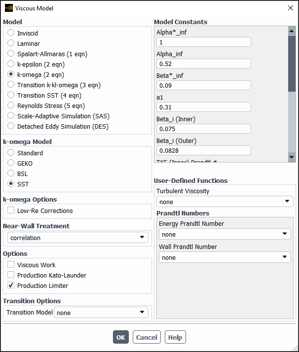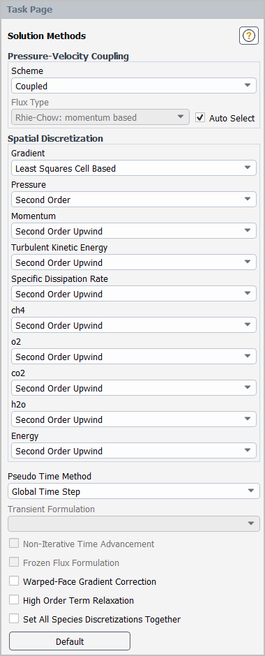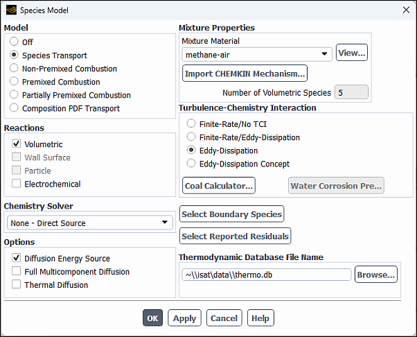 Select Eddy-Dissipation in the Turbulence-Chemistry Interaction group box.