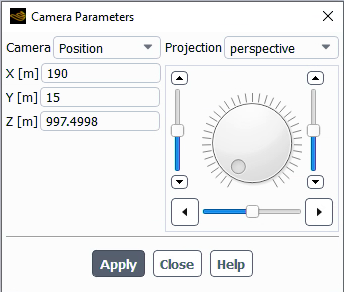 Note: You may notice that the scale of the dimensions in the Camera Parameters dialog box appear very large given the problem dimensions. This is because you have not yet scaled the mesh to the correct units. You will do this in a later step.