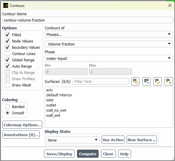 Select Phases... and Volume fraction from the Contours of drop-down lists.