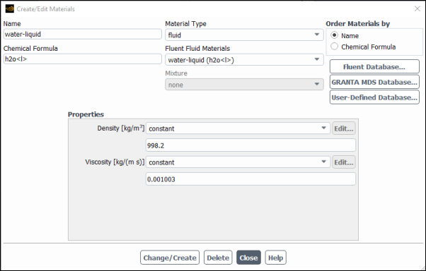 Close the Fluent Database Materials dialog box.