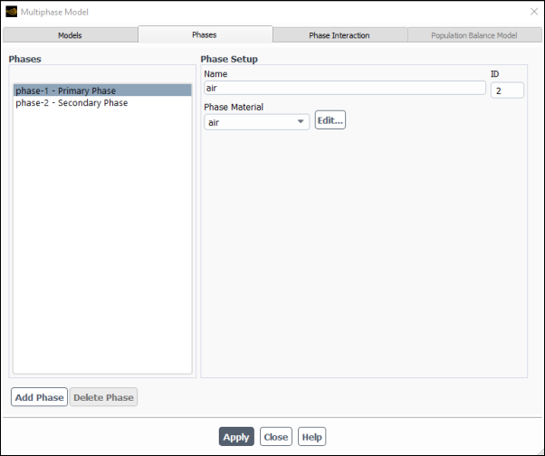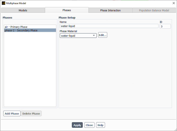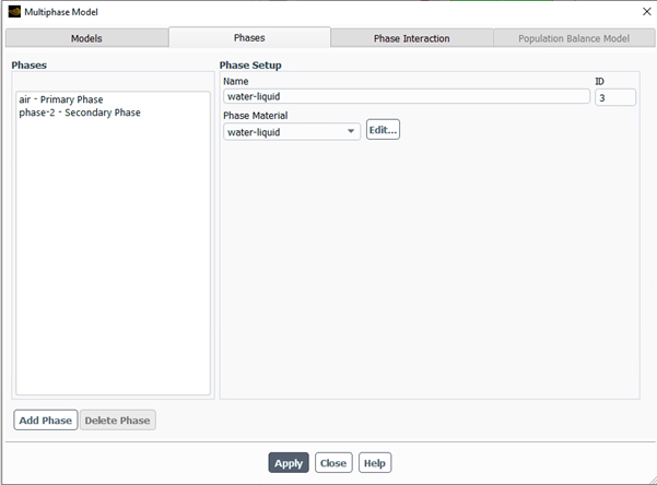 Close the Multiphase Model dialog box.