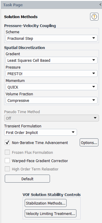 Select Fractional Step from the Scheme drop-down list in the Pressure-Velocity Coupling group box.