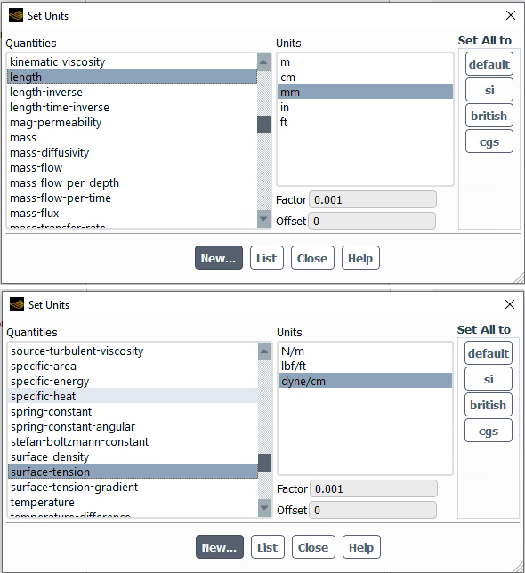 Select surface-tension from the Quantities list.