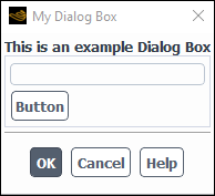 (define (apply-cb) #t) (define update-cb #f) (define table) (define txtField) (define counter 0) (define (button-cb . args) (set! counter (+ counter 1)) (cx-set-text-entry txtField (string-append "Times Clicked: " (number->string counter))) ) (define my-dialog-box (cx-create-panel "My Dialog Box" apply-cb update-cb)) (set! table (cx-create-table my-dialog-box "This is an example Dialog Box")) (set! txtField (cx-create-text-entry table "" 'row 0 'col 0)) (cx-create-button table "Button" 'activate-callback button-cb 'row 1 'col 0) (cx-show-panel my-dialog-box)