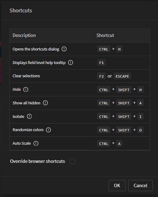 that require you to enable the Override browser shortcuts checkbox