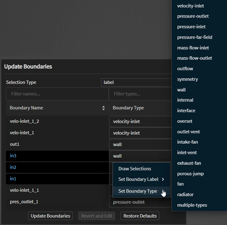 Use the Set Boundary Label option to easily change the label for all selected boundaries.